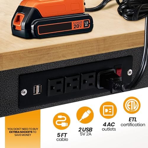Move freely around your space with this wheeled workbench featuring a solid hardwood top and built-in power outlet. Rated for 2000 pounds, it excels in garages or homes. Smooth-rolling casters lock securely for stable work. The expansive surface handles large assemblies comfortably. Quick assembly gets you started fast. A practical addition for dynamic workshops.